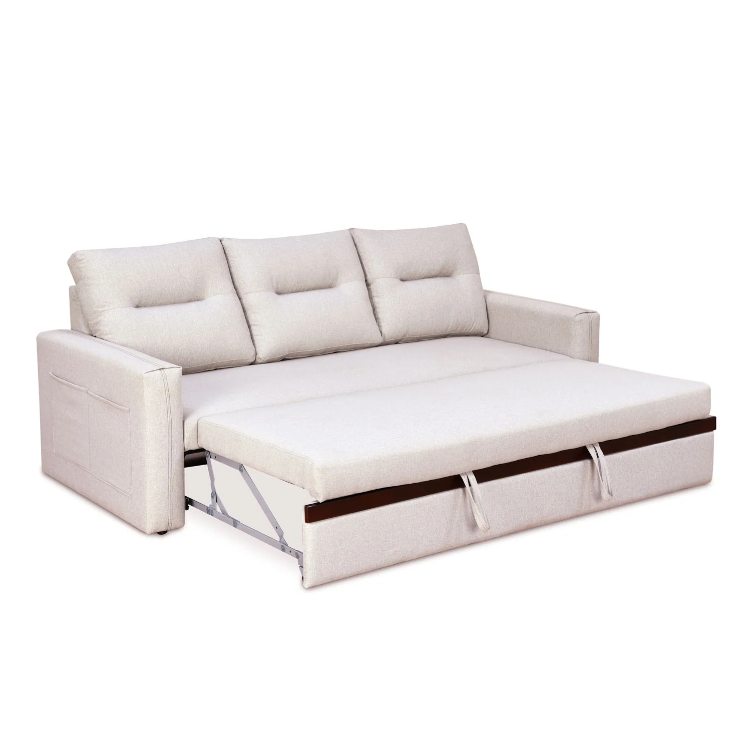 Boxton Fabric 3 Seater Sofa Cum Bed With Side Pockets (Light Brown)