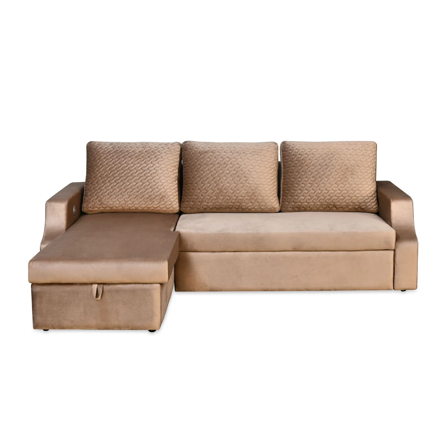 Portland Sofa Cum Bed With Right Lounger & Storage (Light Brown)