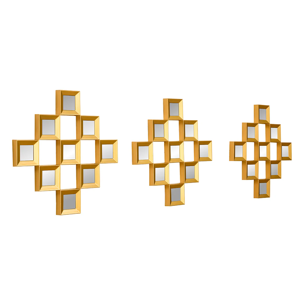 Square Shaped Decorative Mirrors Set of 3 (Gold)—